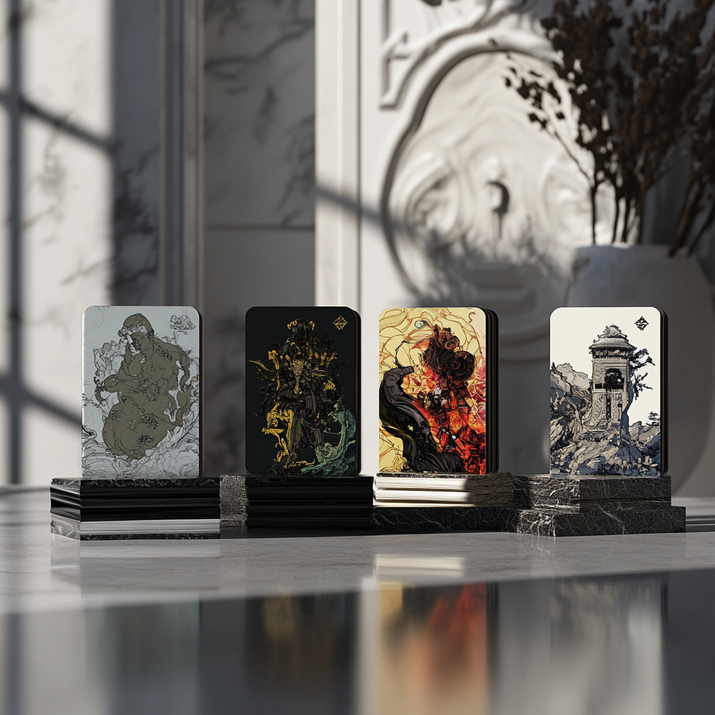 アートトレーディングカードのデザインは、非常に高い美術的センスと技術が感じられます。色使いやディテールに至るまで、視覚的に洗練されており、手に取るたびにその美しさに引き込まれます。これらのカードは、単なる収集品ではなく、アートとコレクションの新しい融合を示していると感じます。デザインのクオリティが、アートとトレーディングカードの境界を超えたことを実感しました。